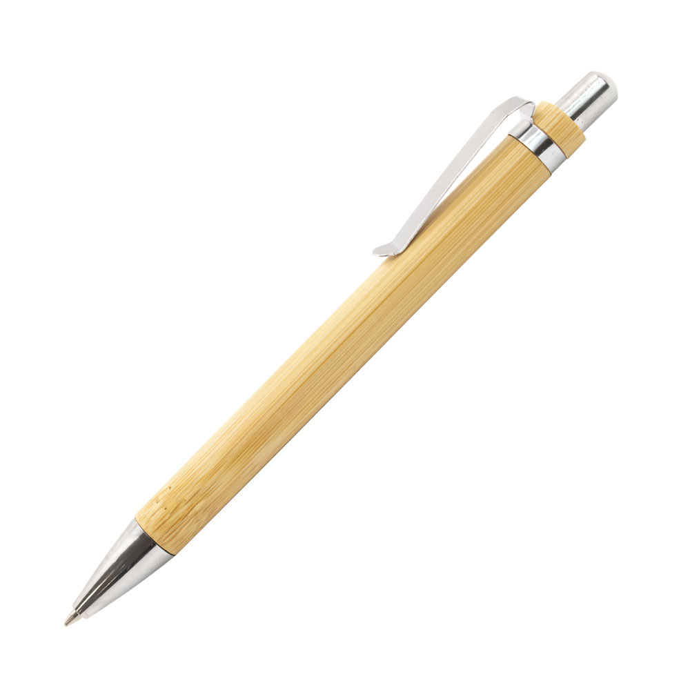 Kugelschreiber aus natürlichem Bambus mit Metallelementen.