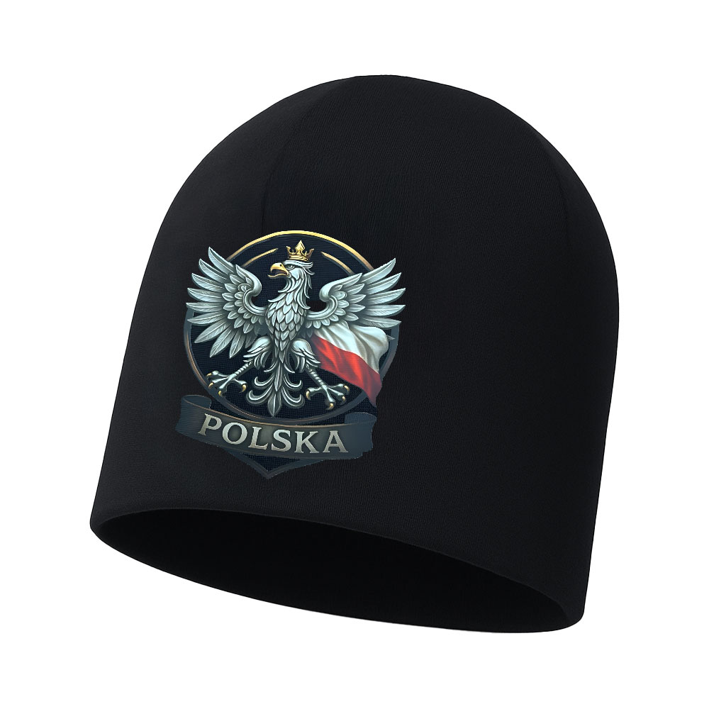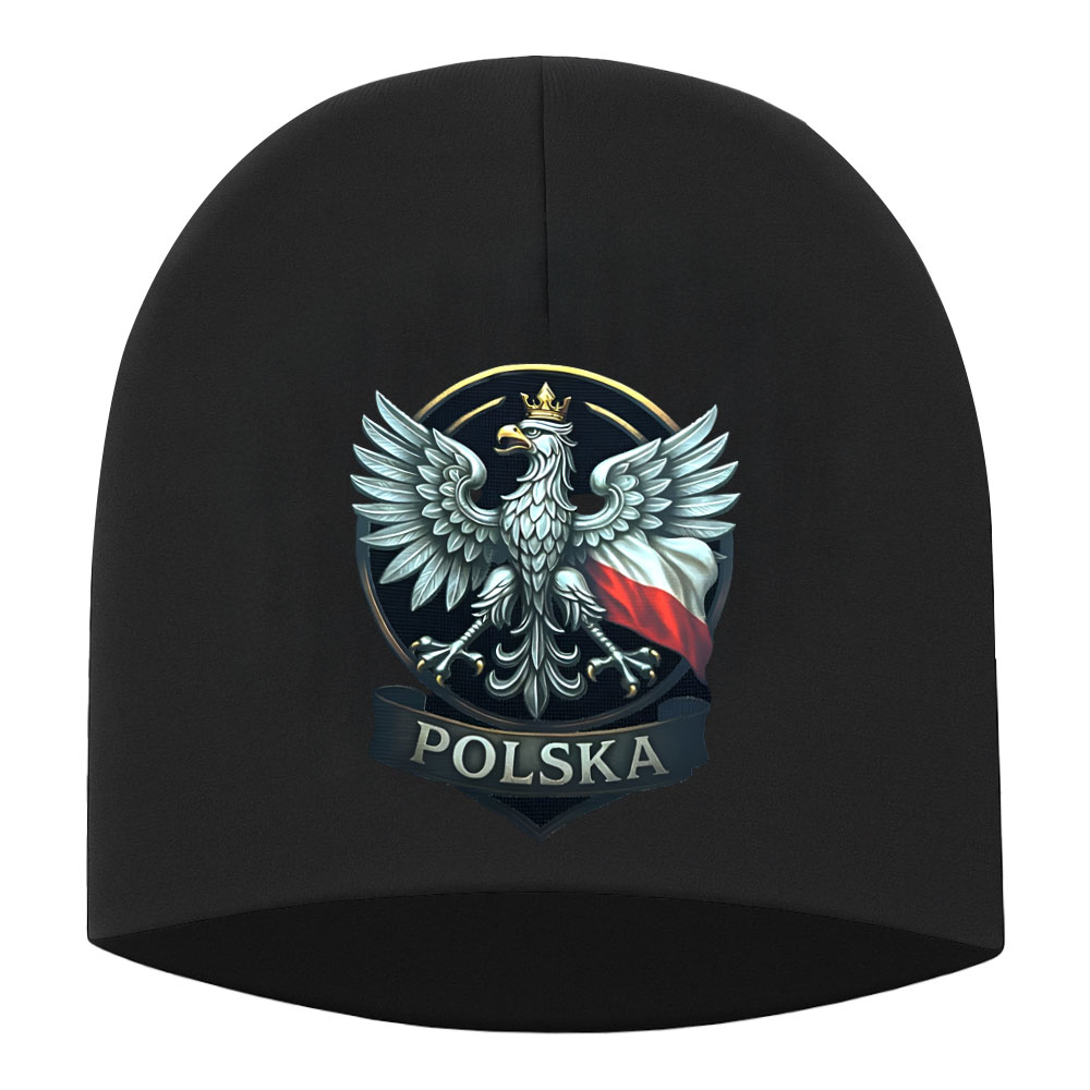 Patriotische Mütze mit dem Aufdruck Adler mit Krone und Flagge – hochwertige Wintermütze mit dauerhaftem Print, ideal für Polen-Fans, Supporter und patriotische Shops. Hergestellt aus 100% Polyester, bietet sie Komfort, Wärme und eine perfekte Präsentation nationaler Symbole.