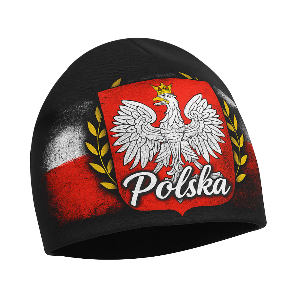 Patriotische Mütze mit dem Aufdruck Adler und Flagge im Grunge-Stil – hochwertige Wintermütze mit dauerhaftem Print, ideal für Polen-Fans, Supporter und patriotische Shops. Hergestellt aus 100% Polyester, bietet sie Komfort, Wärme und eine perfekte Präsentation nationaler Symbole.