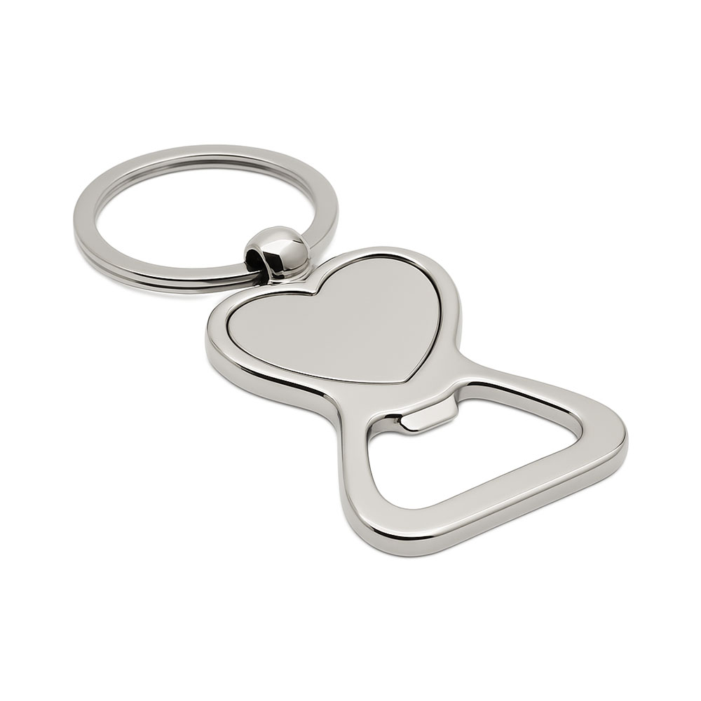 - Forma: brelok w kształcie serca z otwieraczem z tyłu