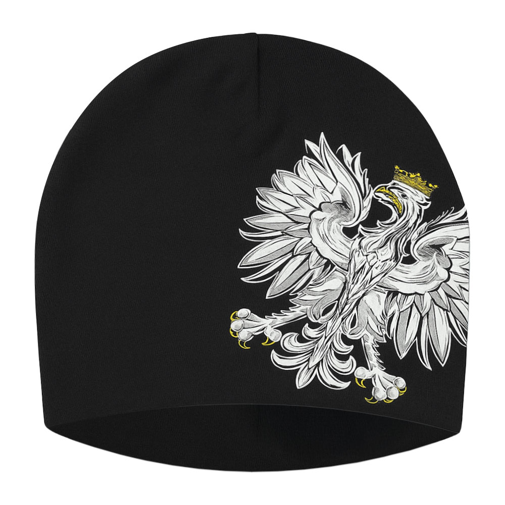 Czapka zimowa, sportowa, patriotyczna z wyrazistym nadrukiem Orzeł Polski. Produkt idealny dla sklepów patriotycznych i militarnych, łączący estetykę z wysoką trwałością wykonania.